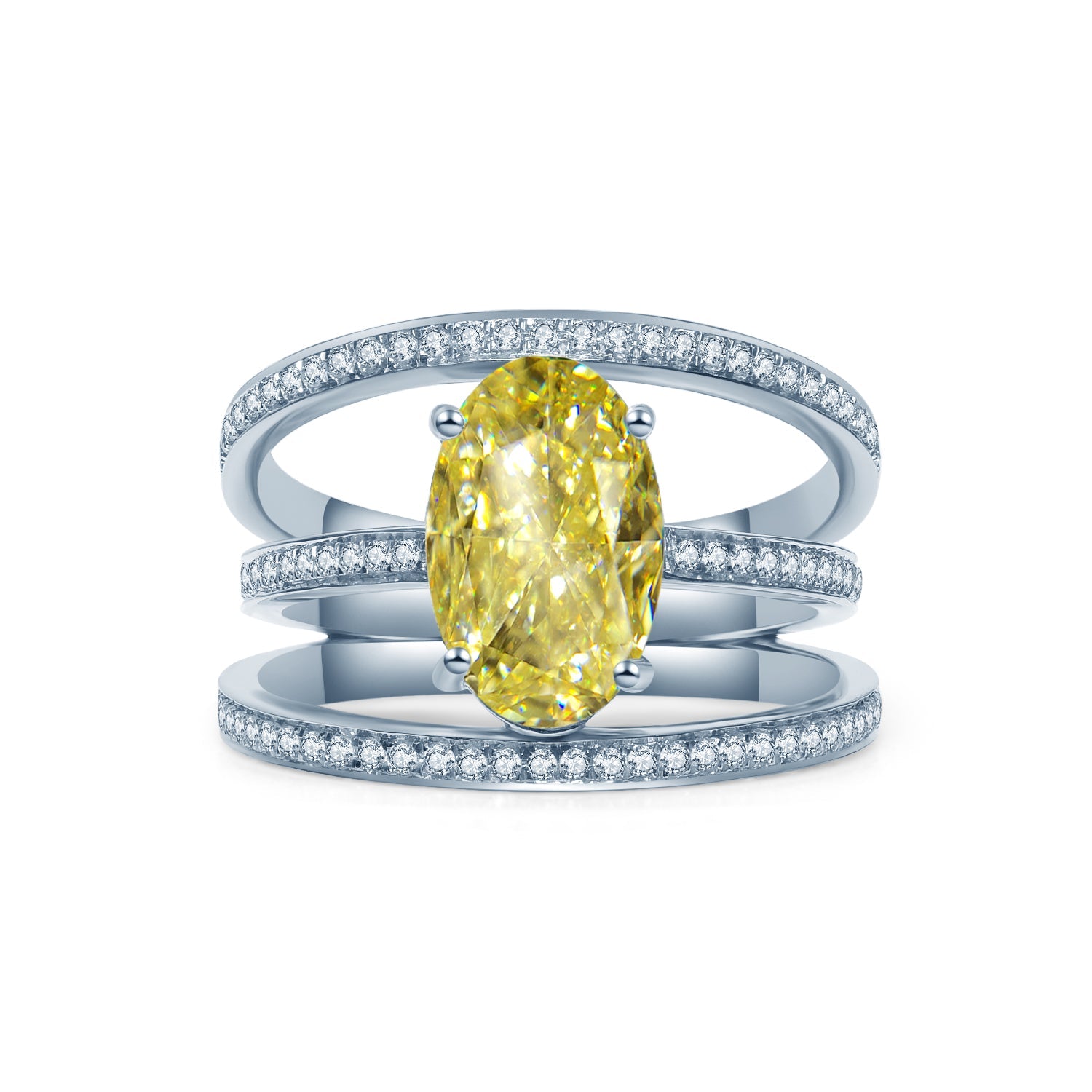 オーバルカット イエローモアサナイト トリプルアーム リング RI393