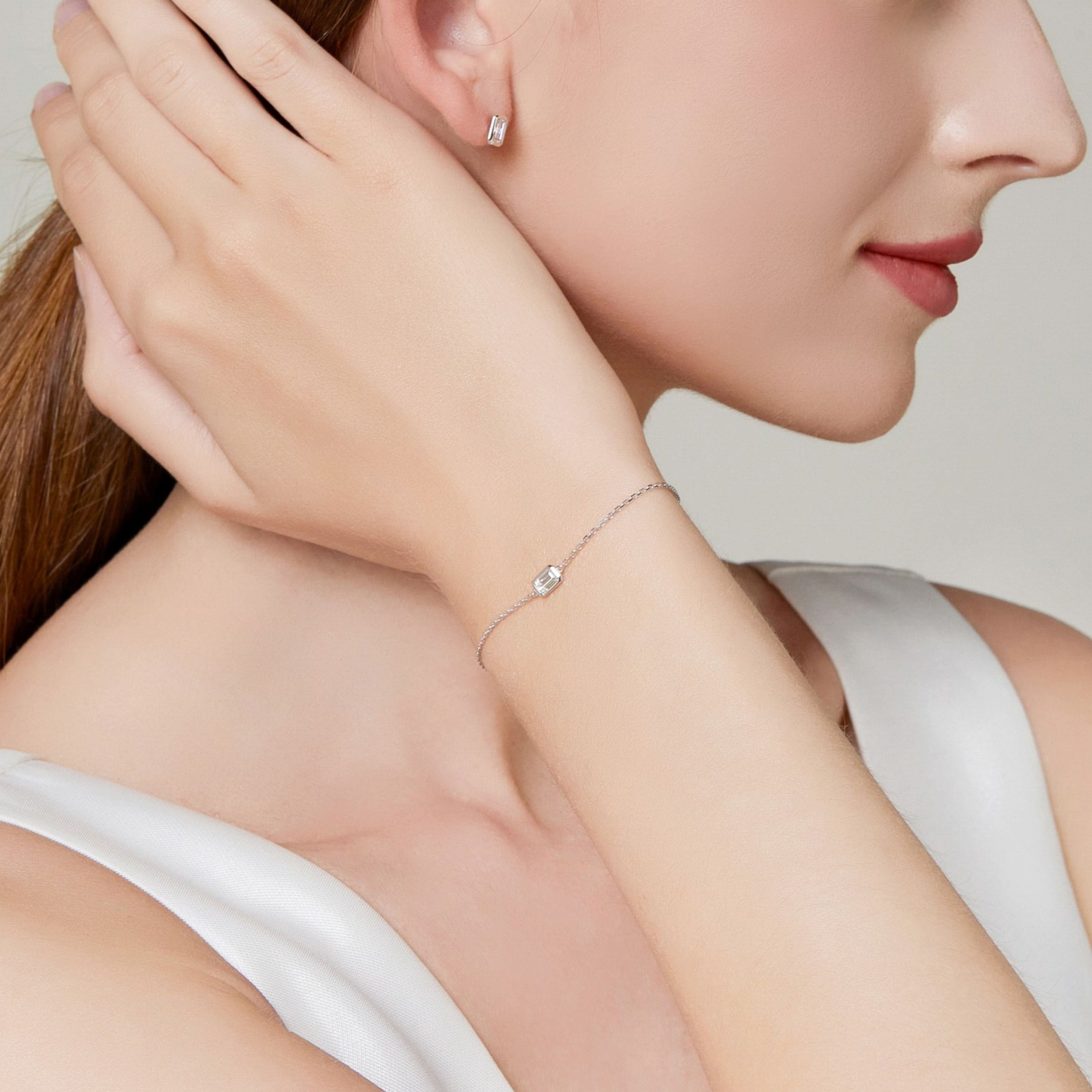 【即納】【Minimal Collection】0.3カラット エメラルドカット 覆輪 ベゼルセッティング ブレスレット BR035
