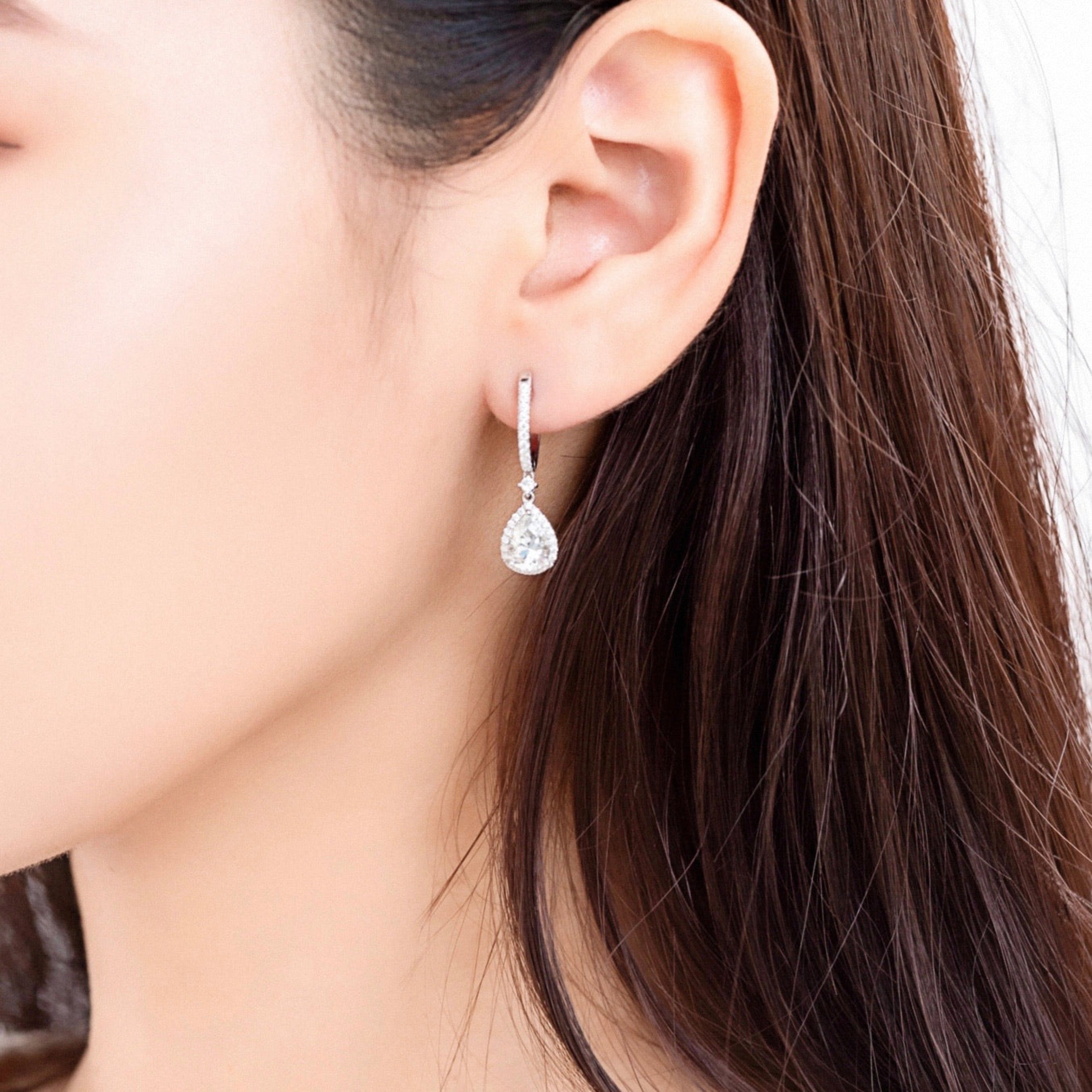 センターストーン:ペアシェイプ モアサナイト両耳計2カラット
