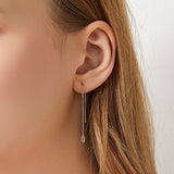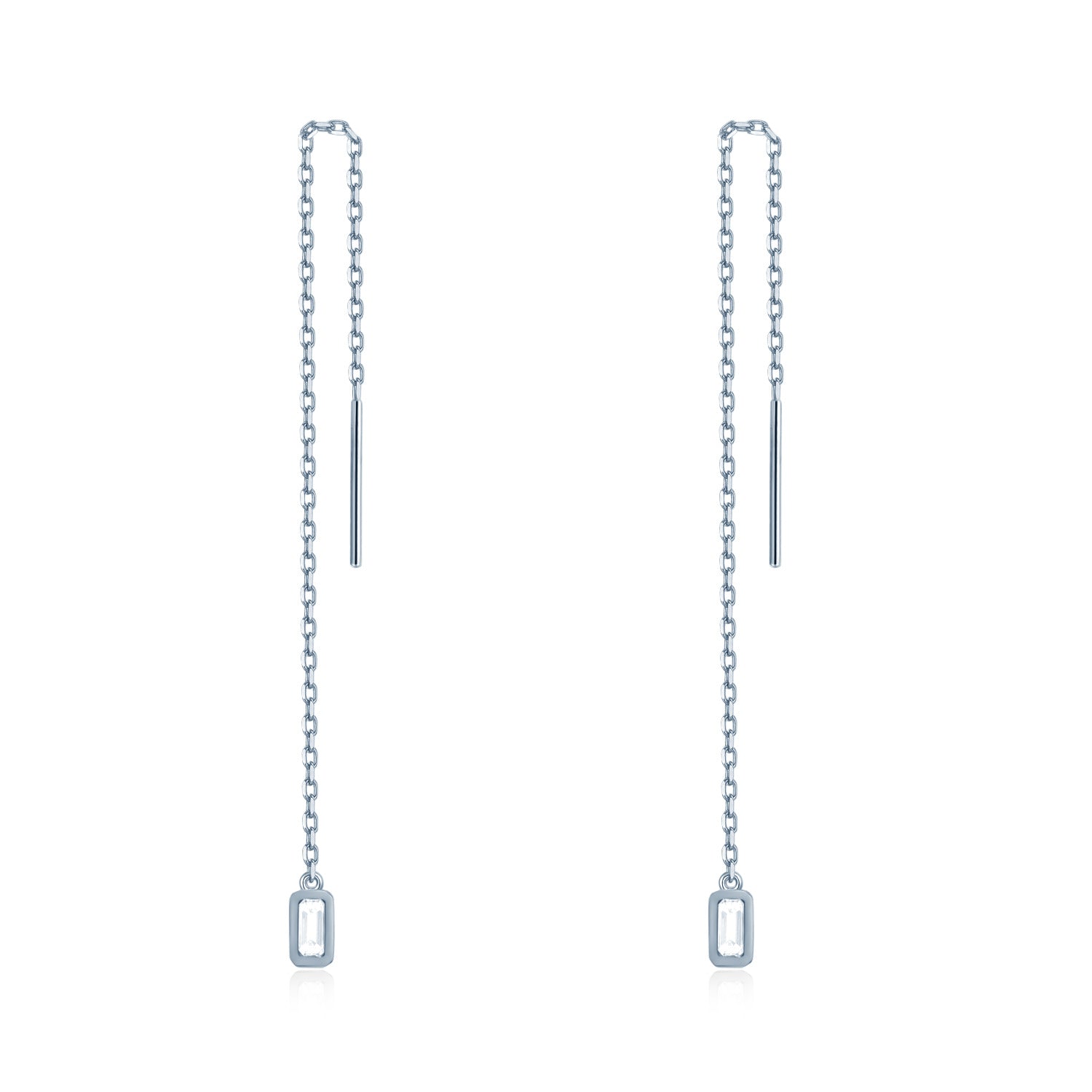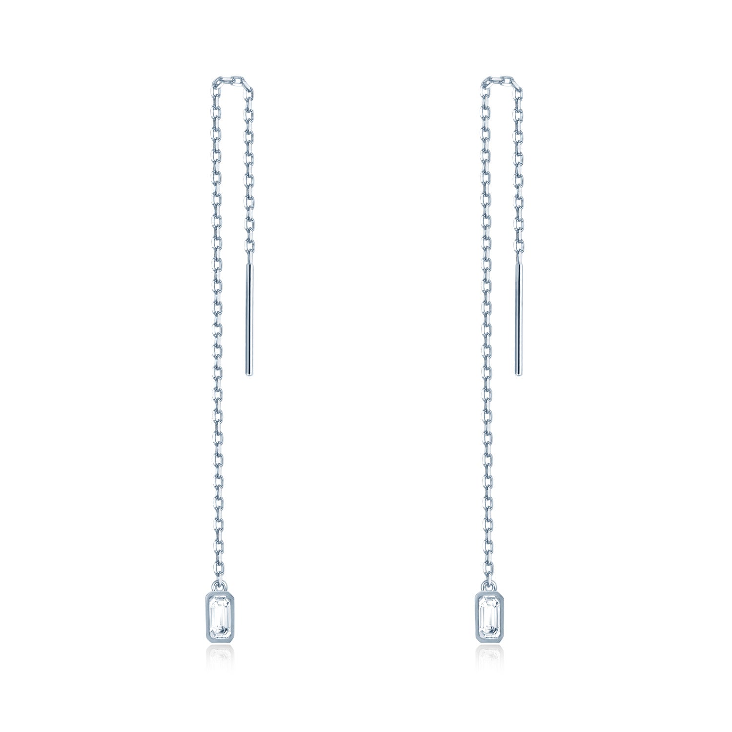 【Minimal Collection】計0.2カラット エメラルドカット 覆輪 ベゼルセッティング チェーン ピアス ER100