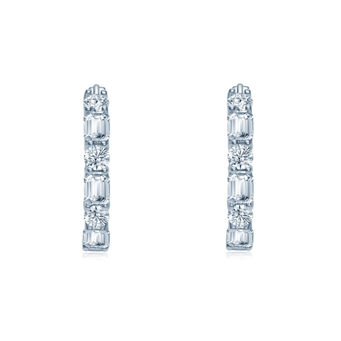 計3.0カラット ラウンド エメラルドカット フープ ピアス ER113