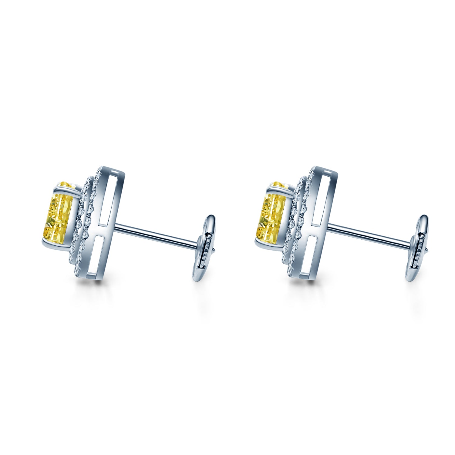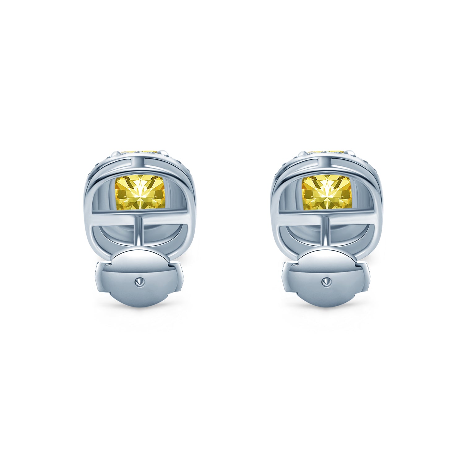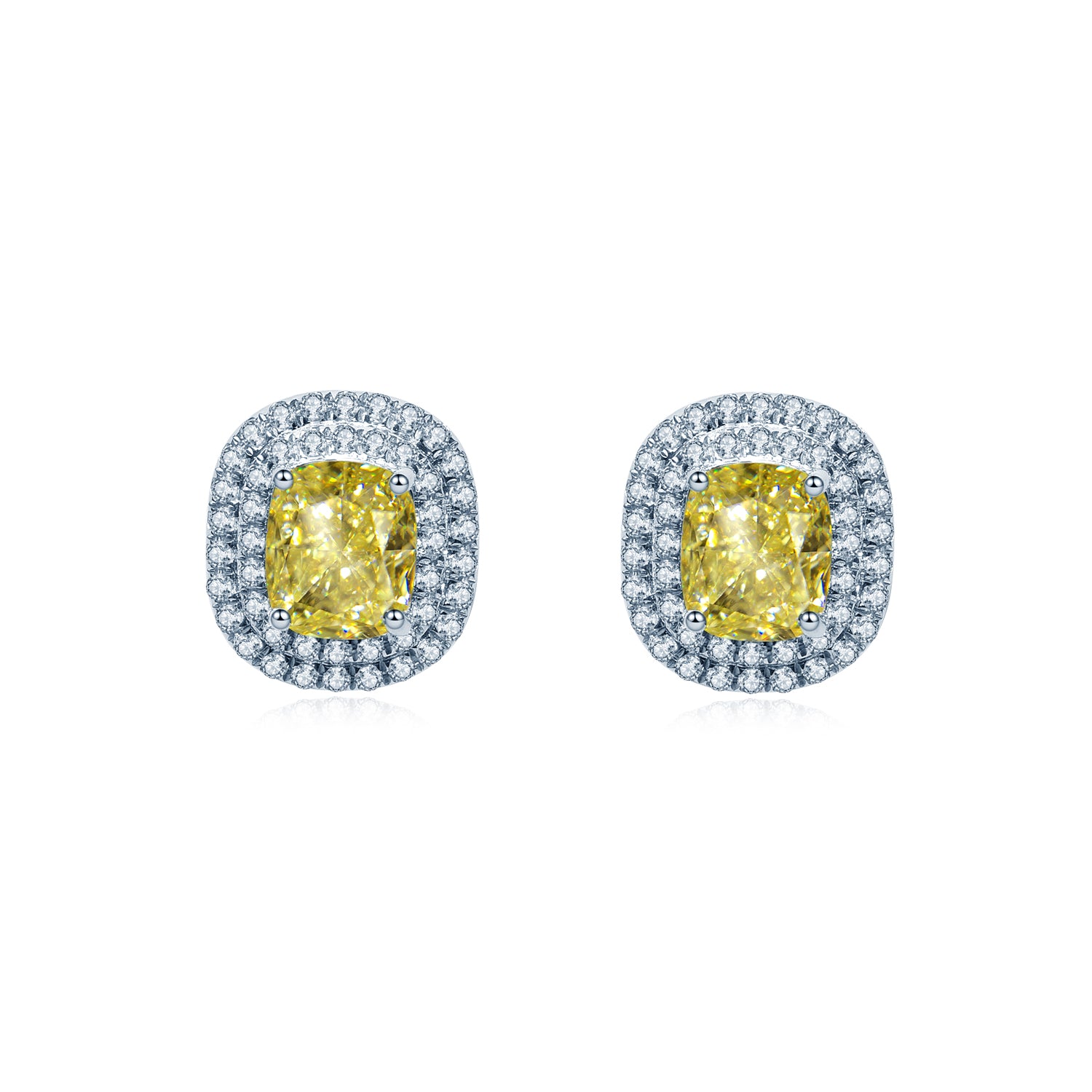 イエローモアサナイト クッションカット ダブル ヘイロー ピアス ER117