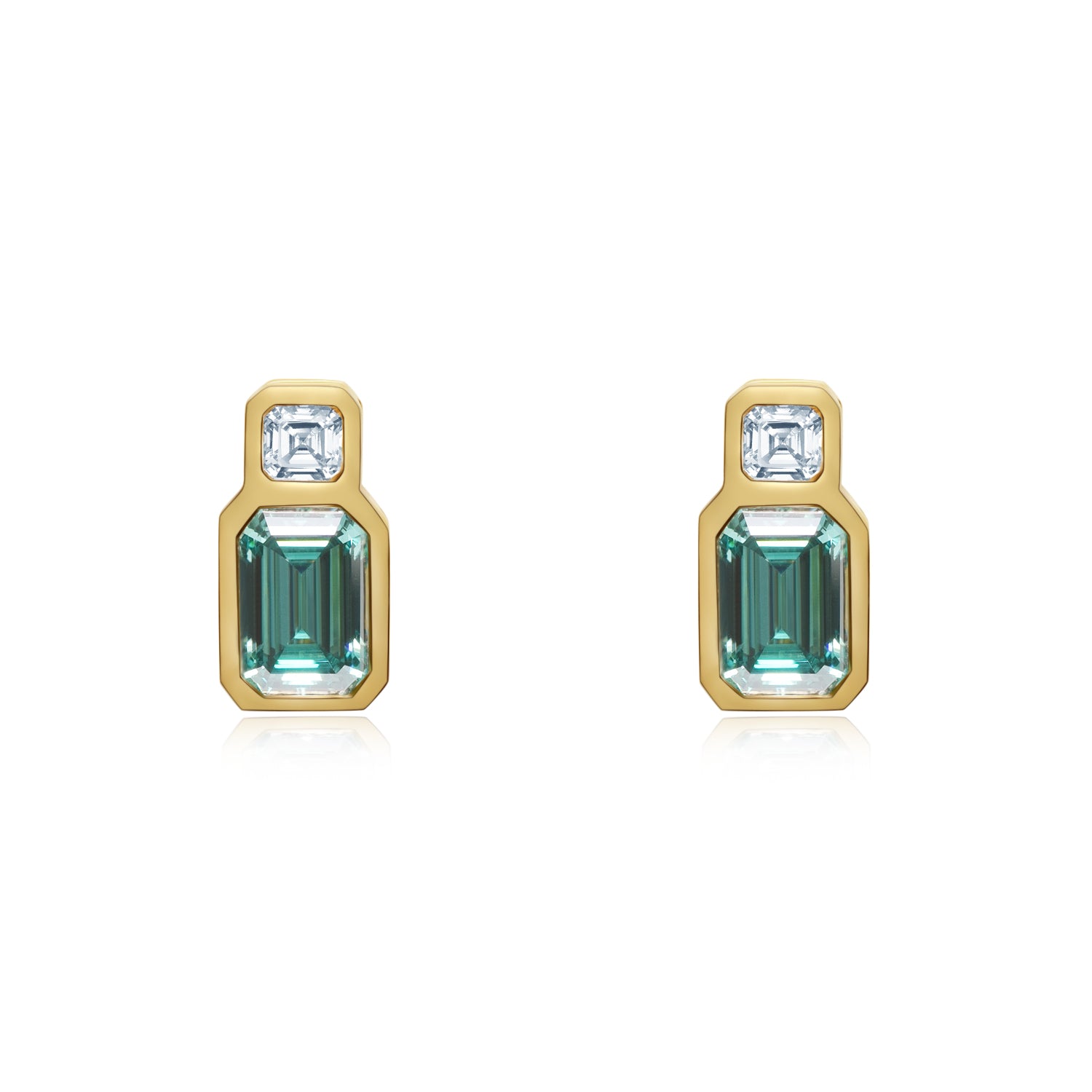 モアサナイト:計1.2カラット(エメラルドカット、グリーンモアサナイト各0.5カラット、アッシャーカット、クリアモアサナイト各0.1カラット)