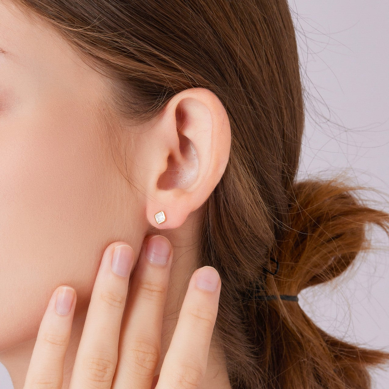 【即納】【Minimal Collection】【片耳】0.3カラット アッシャーカット 覆輪 ベゼルセッティング スタッド ピアス ER148YG