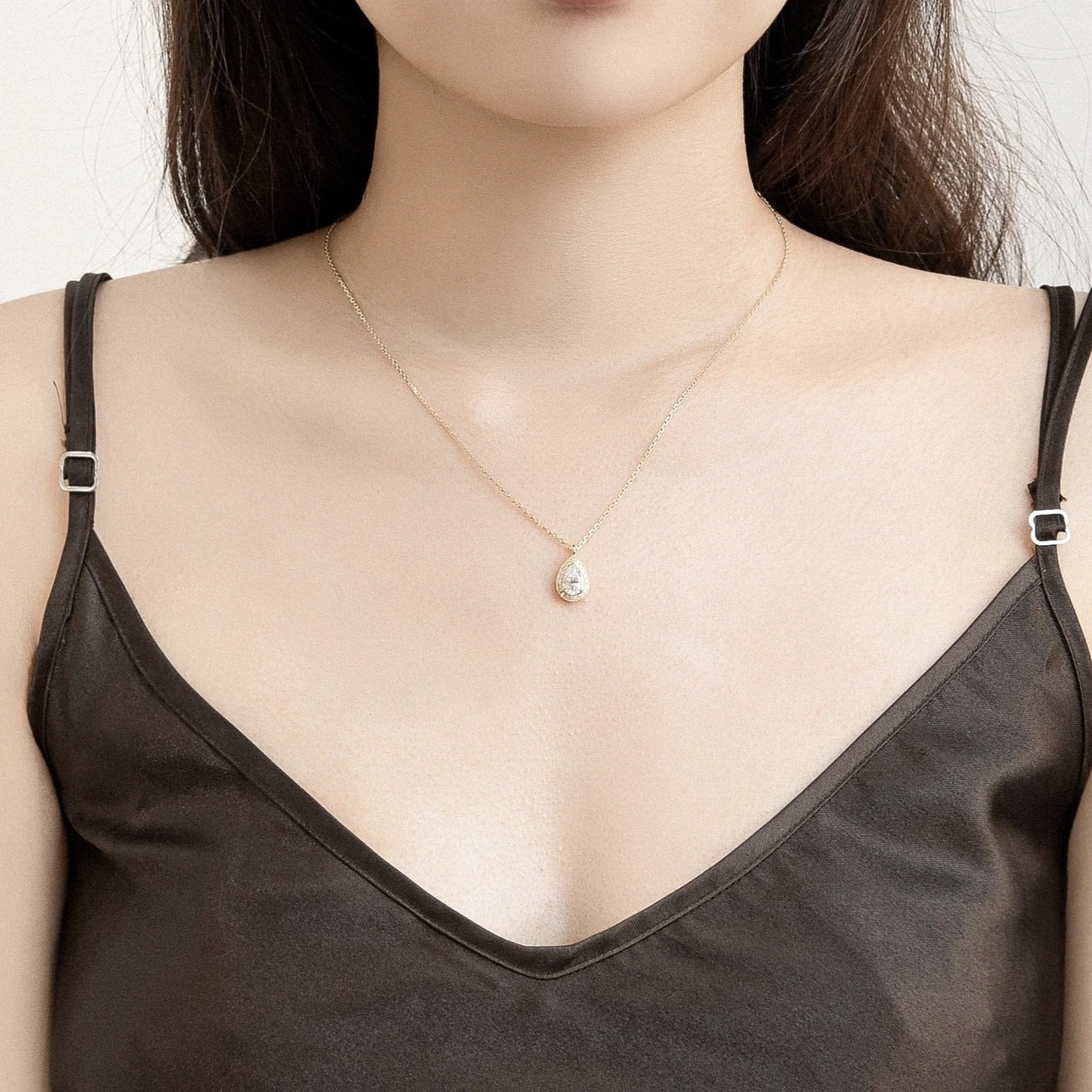 ペアシェイプ ヘイロー ミル打ち ネックレス NE046