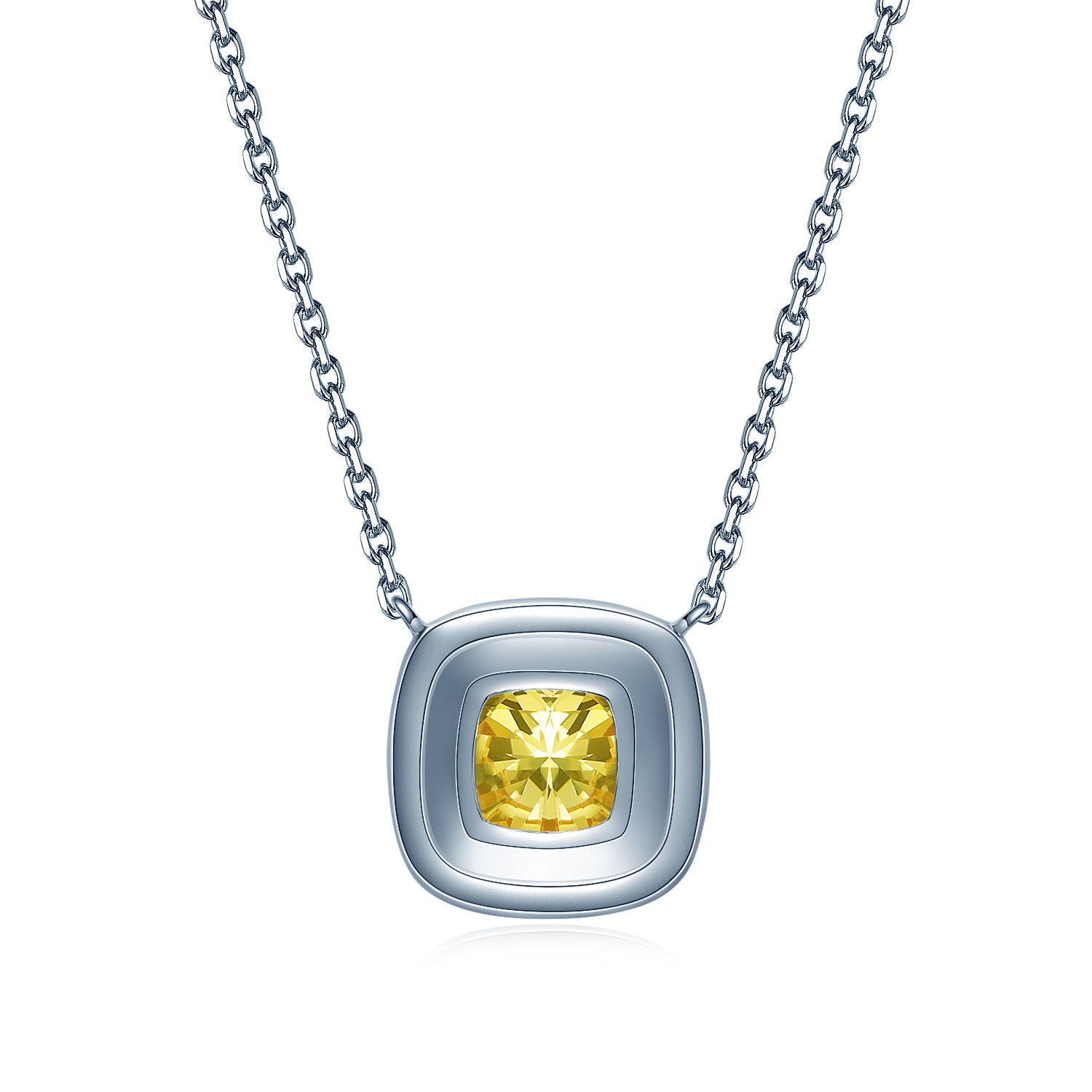 イエローモアサナイト クッションカット ダブル ヘイロー ネックレス NE047