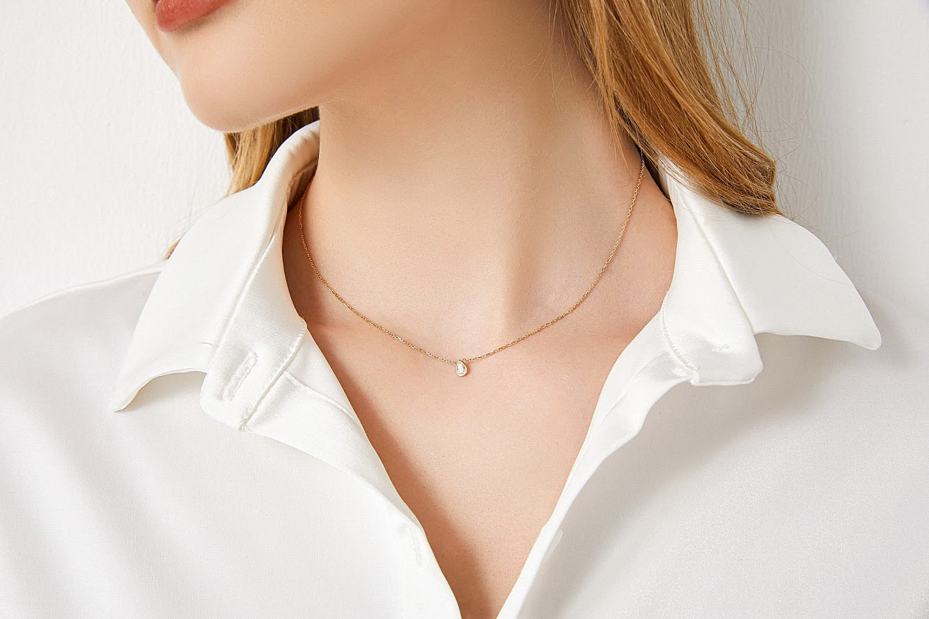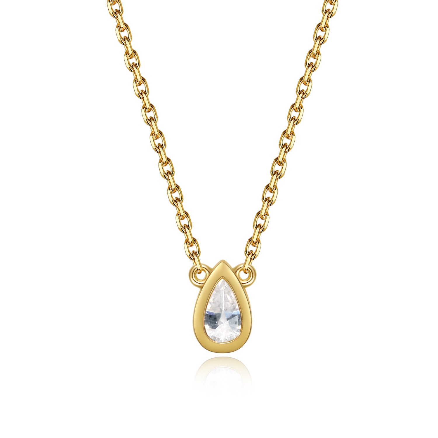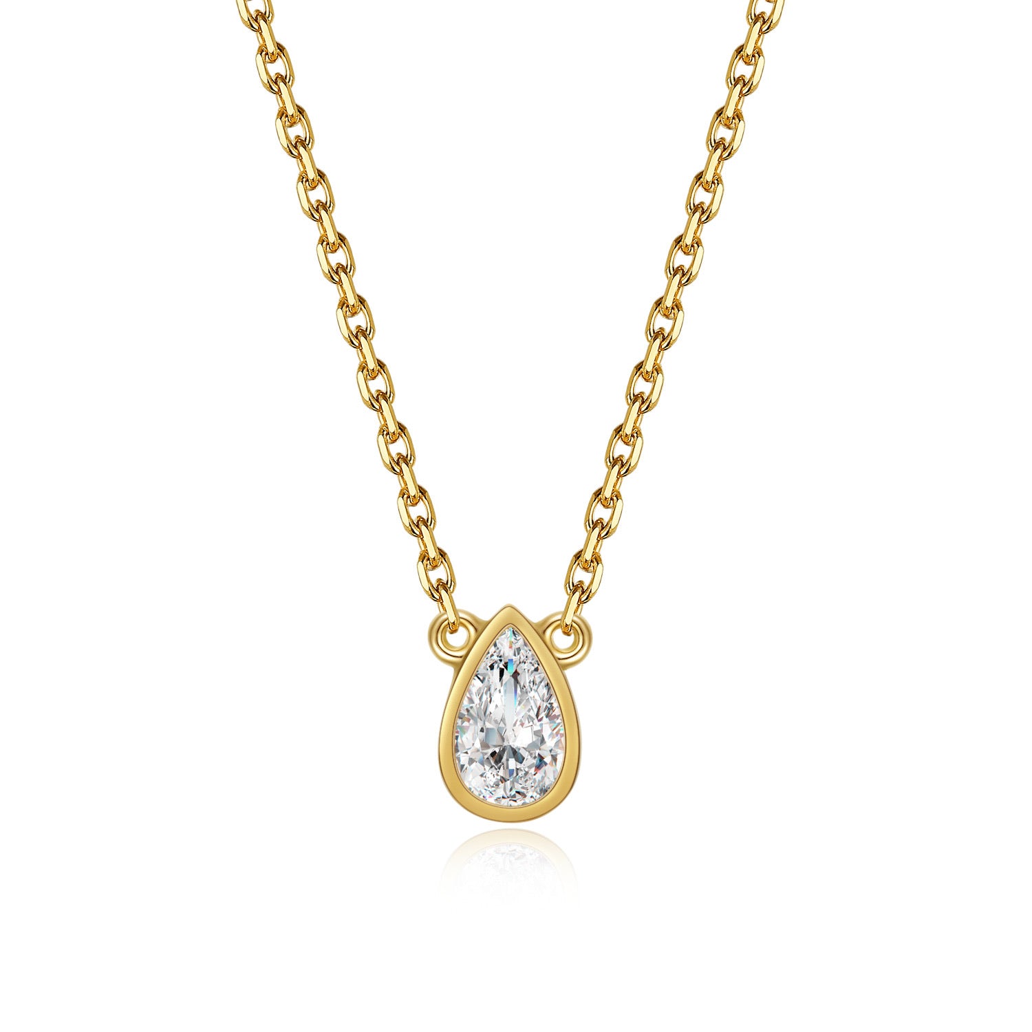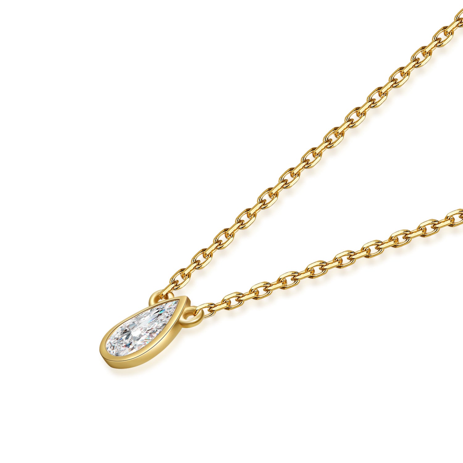 【即納】【Minimal Collection】0.3カラット ペアシェイプ 覆輪 ベゼルセッティング ネックレス NE083YG