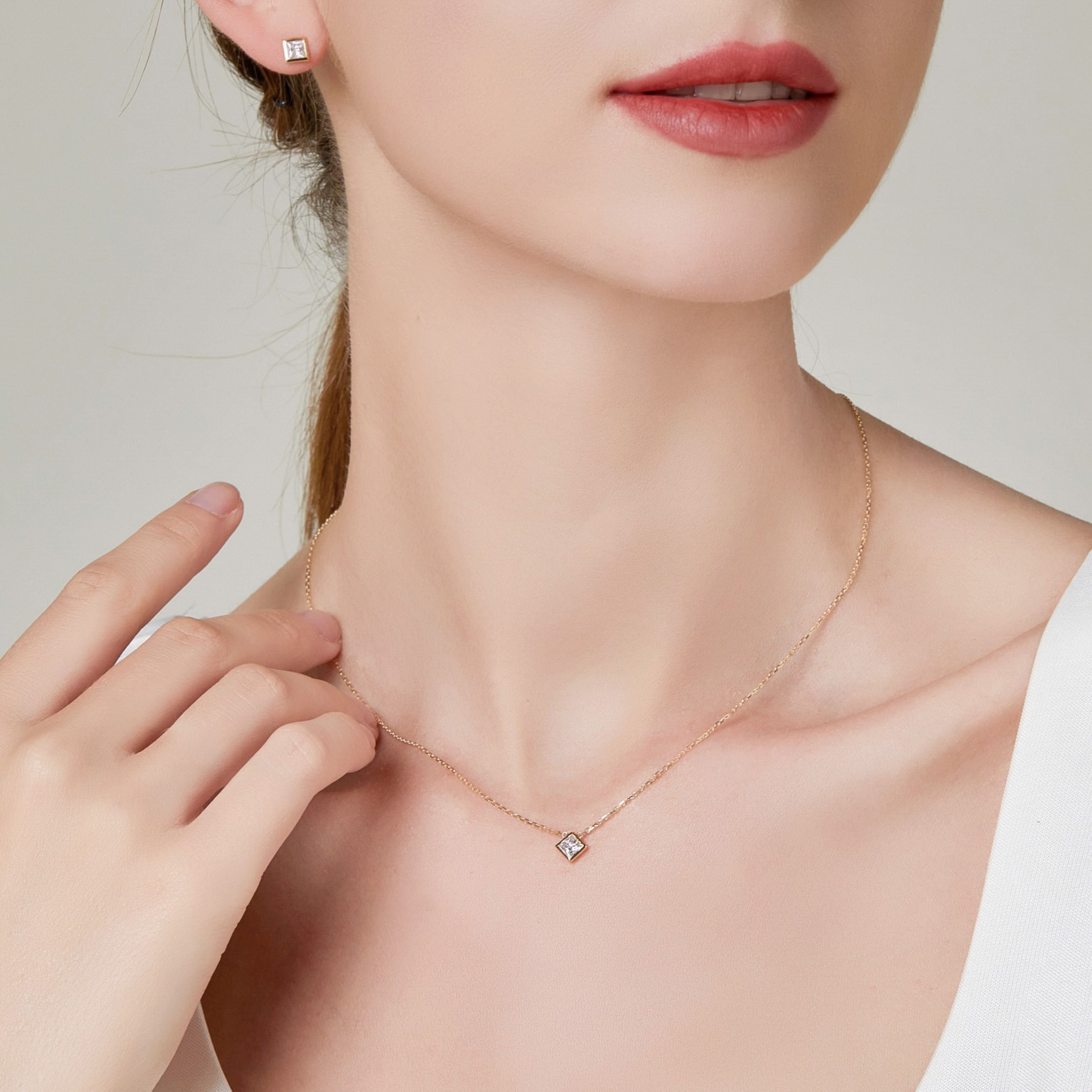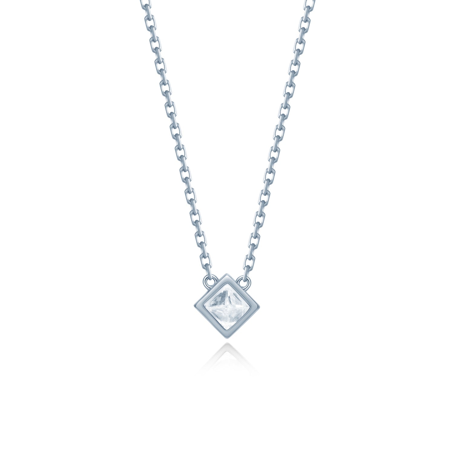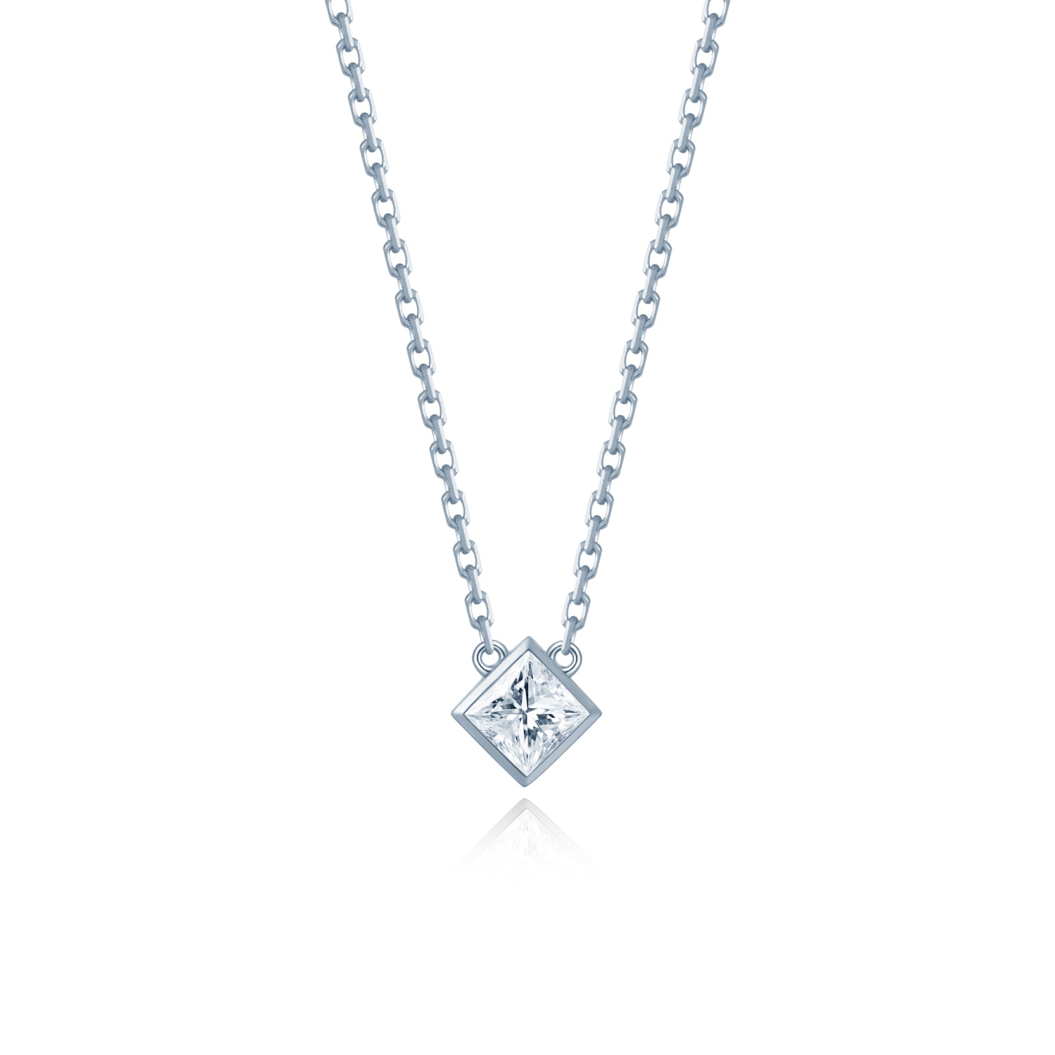 【即納】【Minimal Collection】0.3カラット プリンセスカット 覆輪 ベゼルセッティング ネックレス NE101