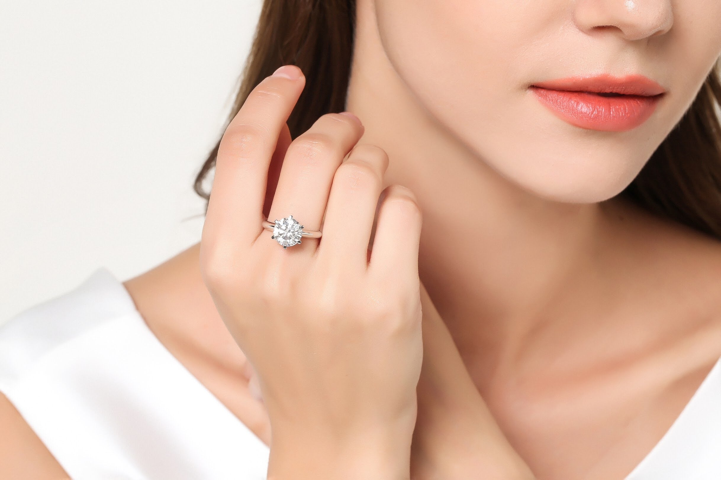 センターストーン:ラウンドカット、モアサナイト0.5〜3.0カラットよりお選びいただけます。