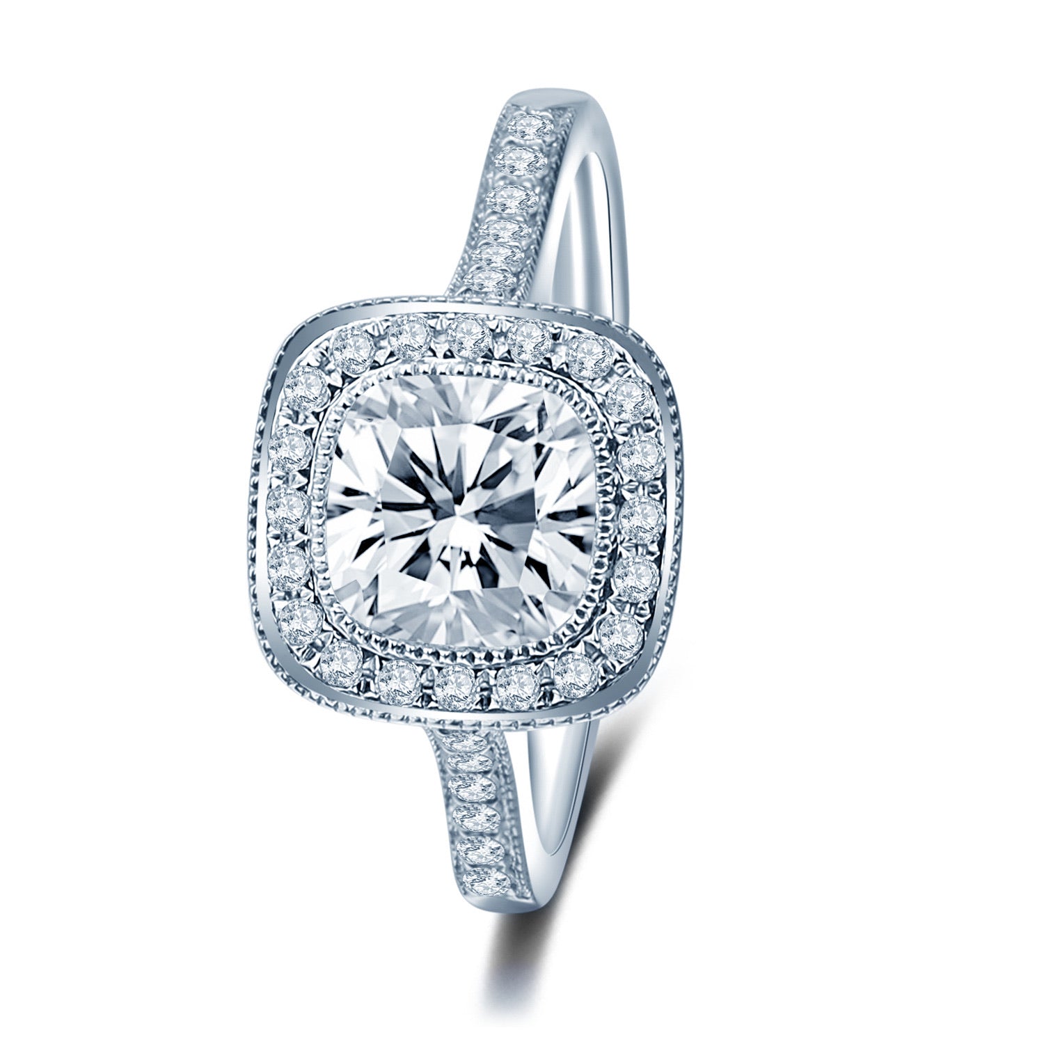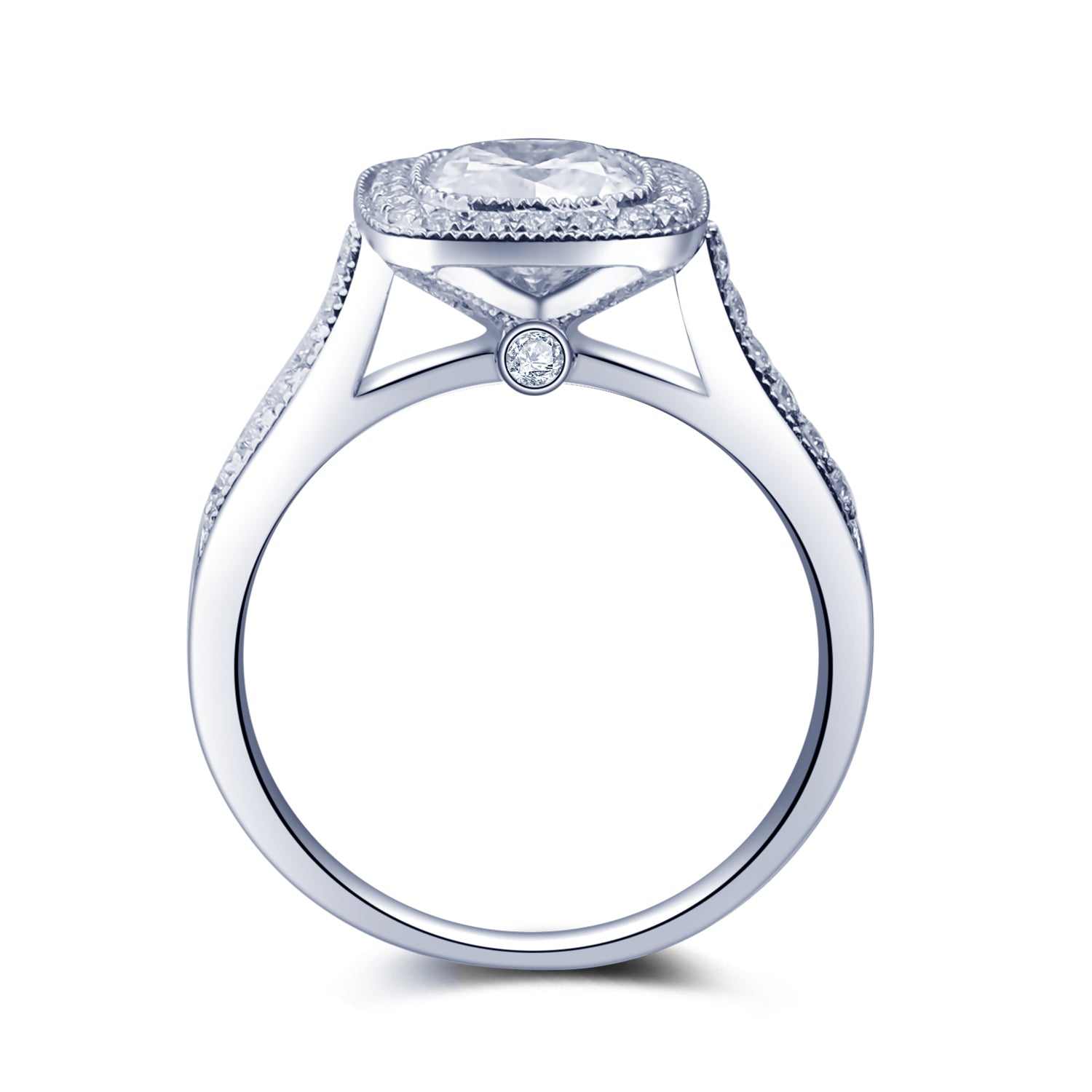センターストーン:クッションカット、モアサナイト0.5〜3.0カラットよりお選びいただけます。