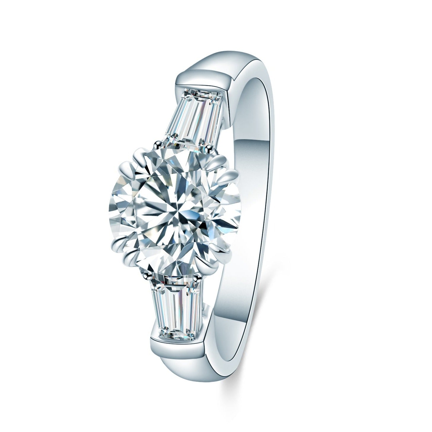 センターストーン:ラウンドカット、モアサナイト0.5〜3.0カラットよりお選びいただけます。