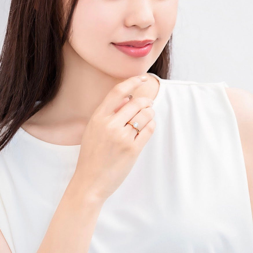 センターストーン:ラウンドカット、モアサナイト0.5〜3.0カラットよりお選びいただけます。