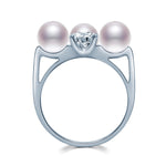0.6ctのモアサナイト三つと6mmのパール三つが惜しみなく互いにその輝きを引き立たせる。