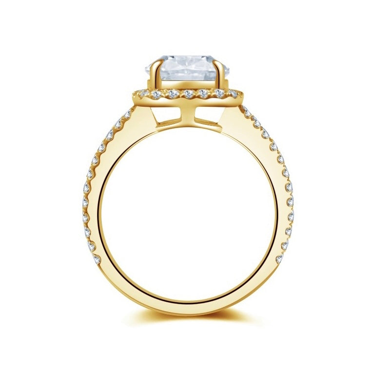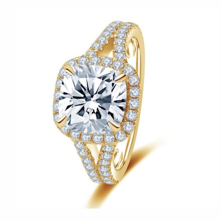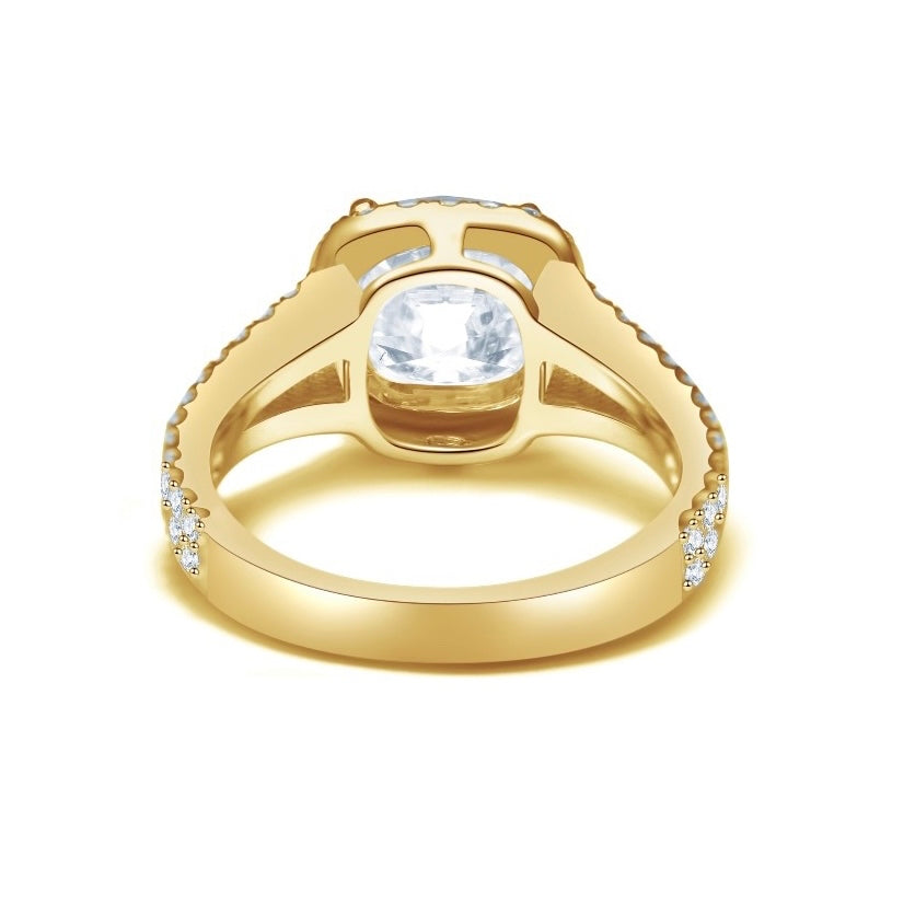 クッションカット ヘイロー Y字アーム リング RI185YG