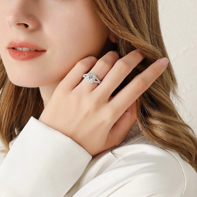 センターストーン:クッションカット、モアサナイト0.5〜3.0カラットよりお選びいただけます。