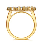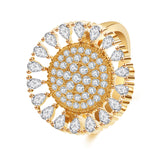 小粒のペアシェイプで麗しい花びら、中央のパヴェがまばゆく輝き、ひまわりを愛らしく表現。