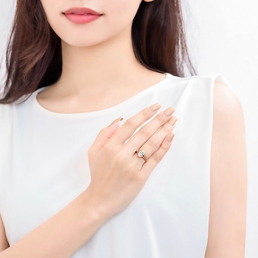 センターストーン:オーバルカット、モアサナイト0.5〜3.0カラットよりお選びいただけます。