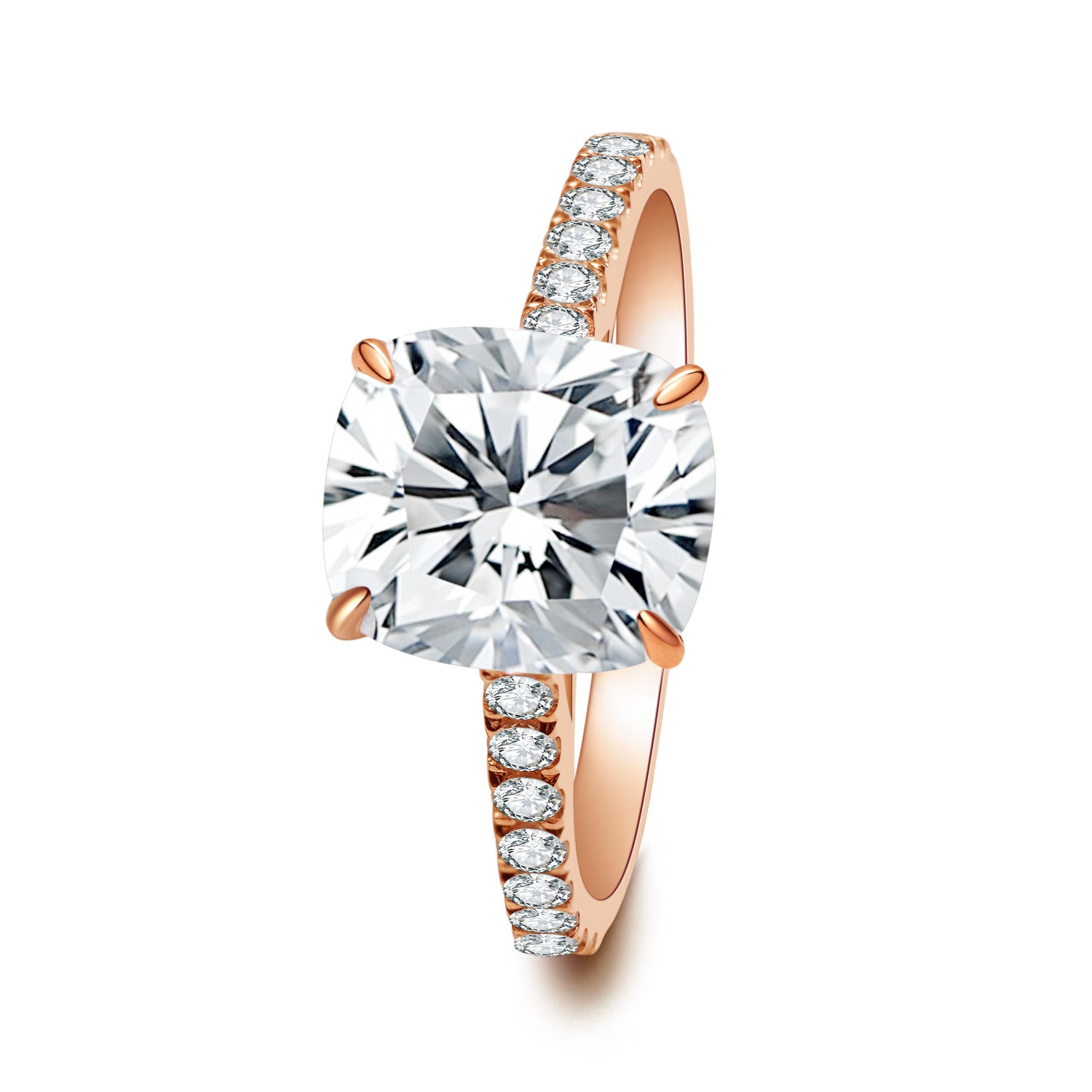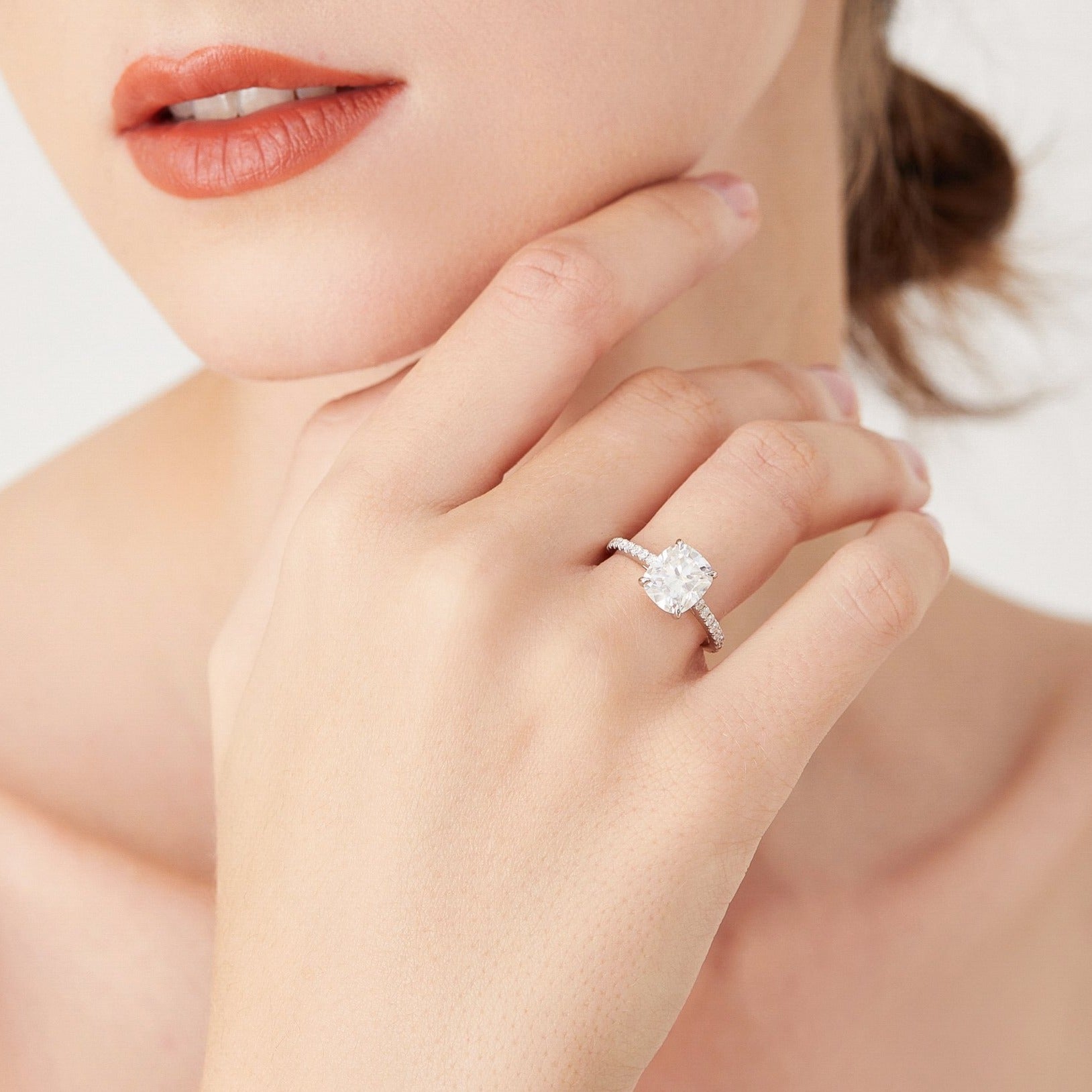 センターストーン:クッションカット、モアサナイト0.5〜3.0カラットよりお選びいただけます。