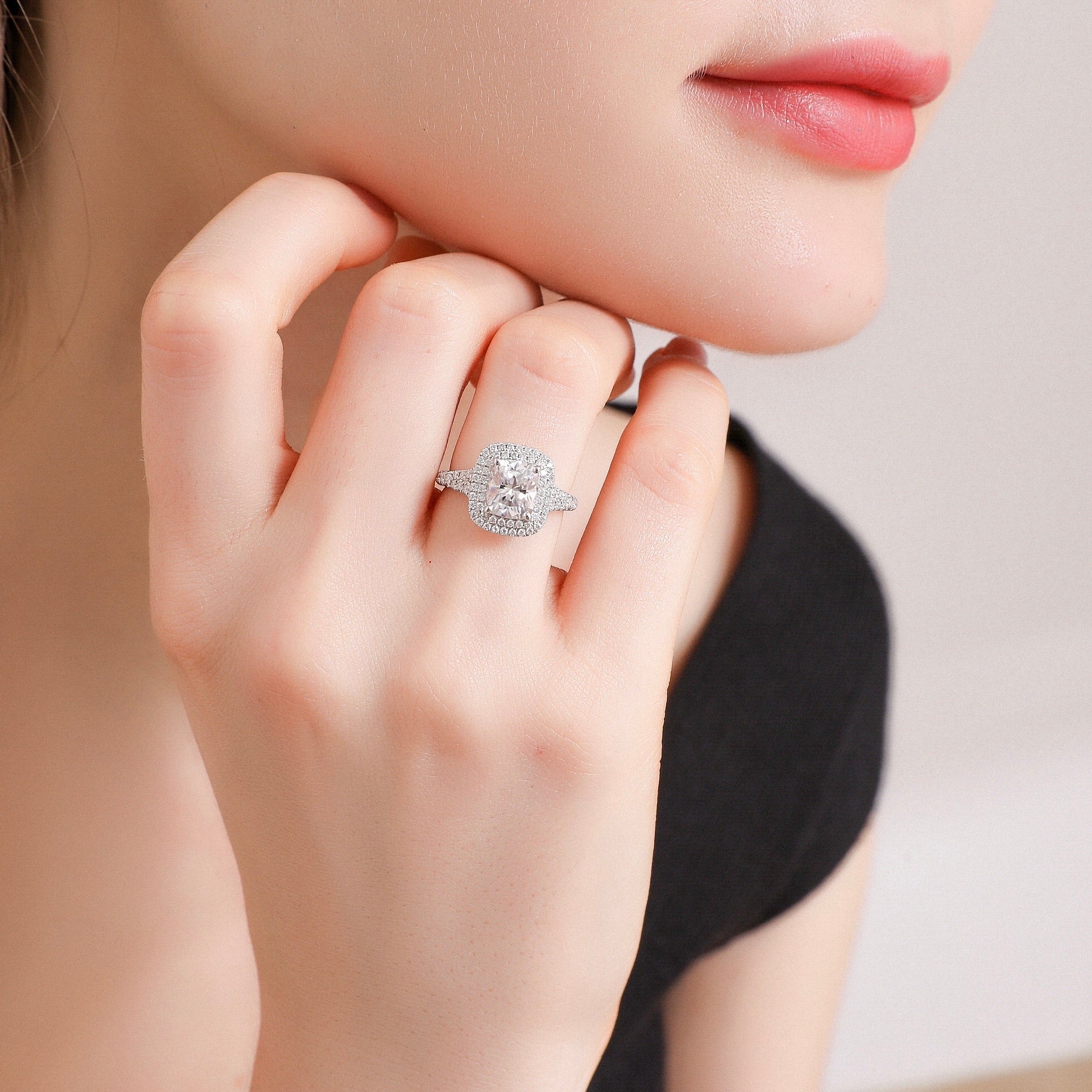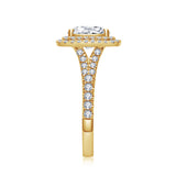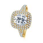 クッションカット ダブルヘイロー Y字アーム リング RI338YG