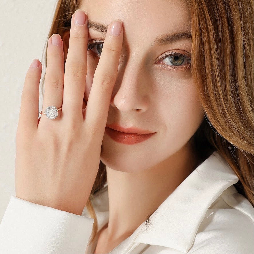 センターストーン:クッションカット、モアサナイト0.5〜3.0カラットよりお選びいただけます。