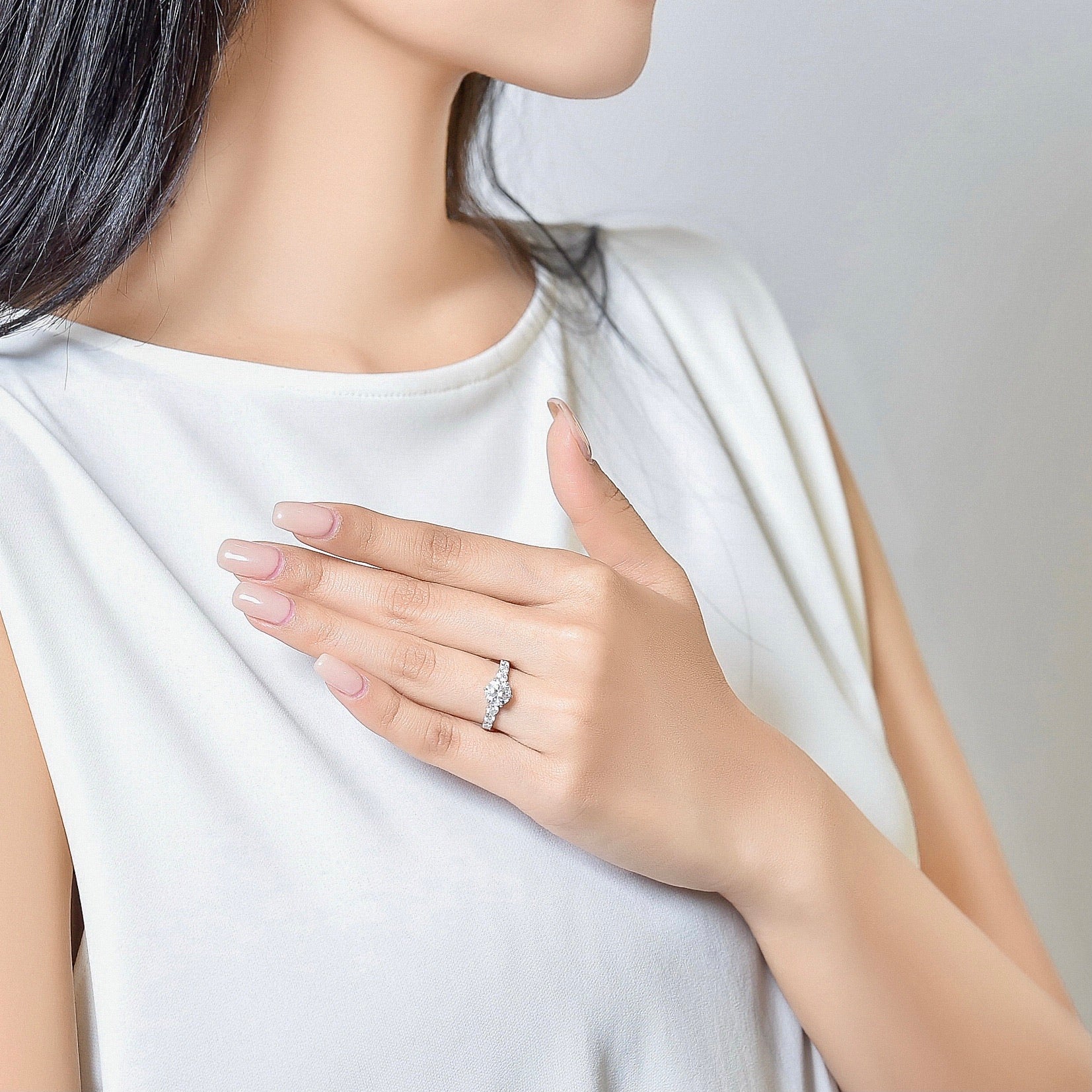センターストーン:ラウンドカット、モアサナイト0.5〜3.0カラットよりお選びいただけます。