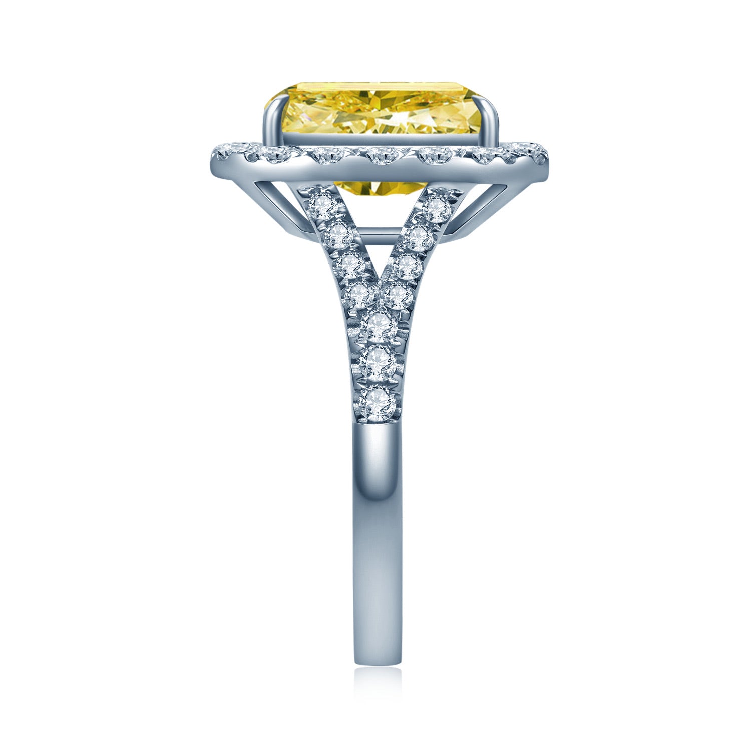 【即納】イエローモアサナイト エメラルドカット ヘイローY字アーム リング RI359