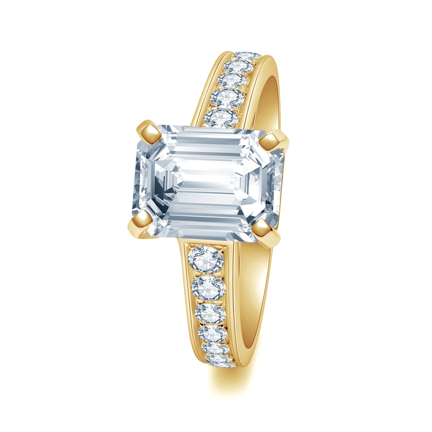 エメラルドカット ソリティア レールアーム リング RI367YG