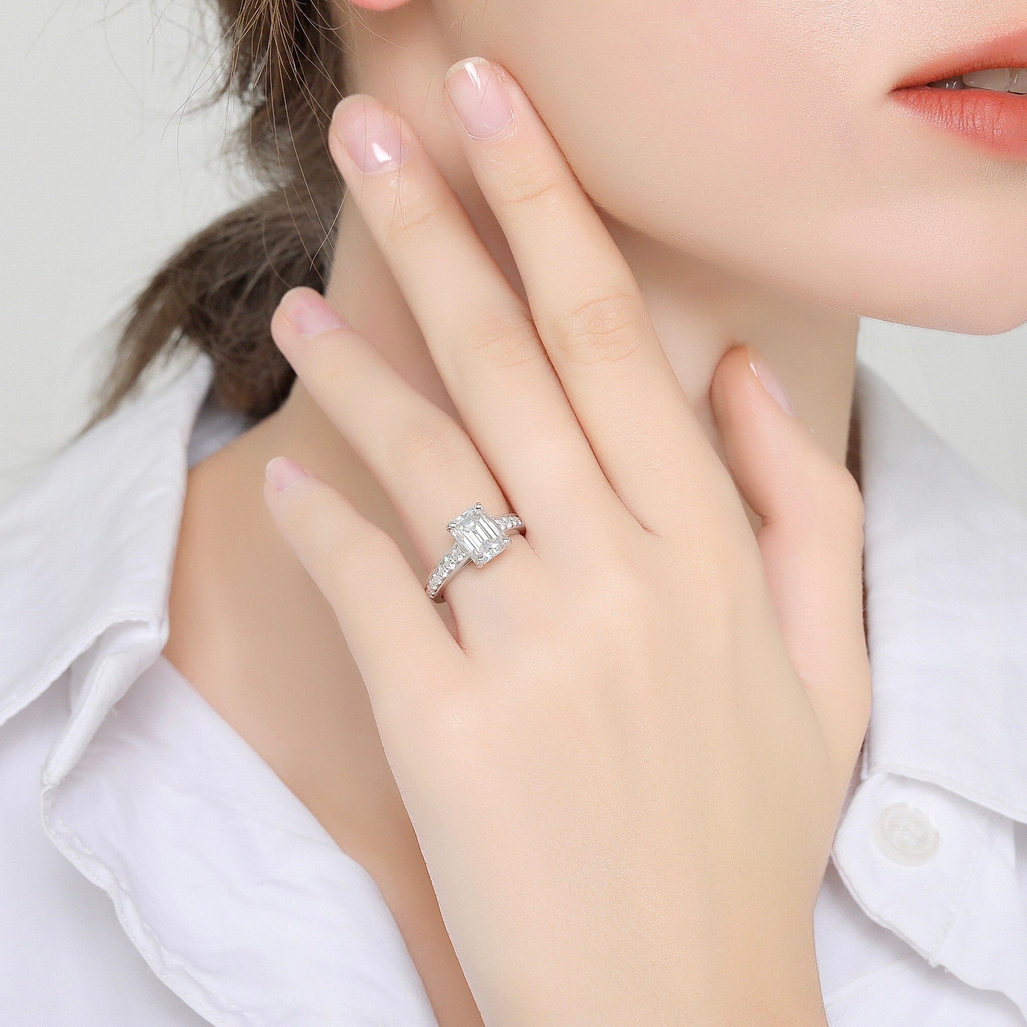 センターストーン:エメラルドカットモアサナイト0.5〜3.0カラットよりお選びいただけます。