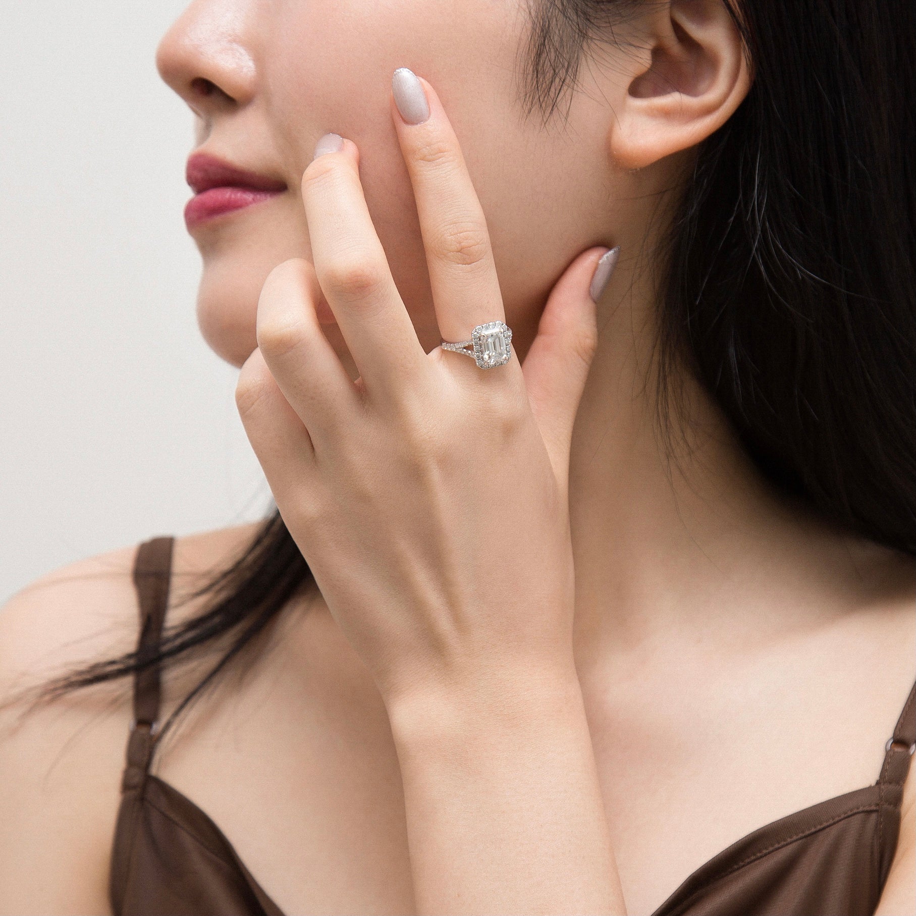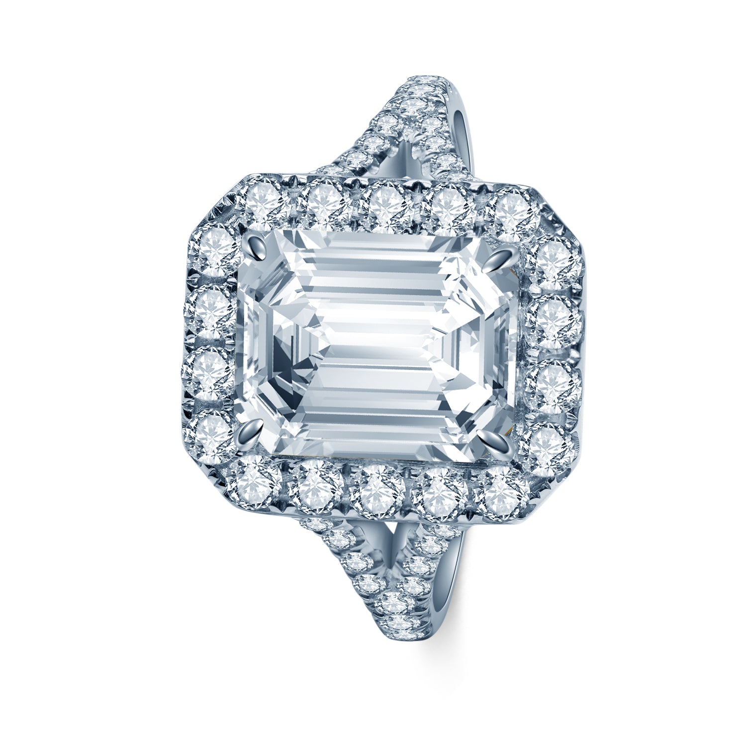 エメラルドカット ヘイロー Y字 アーム リング RI383