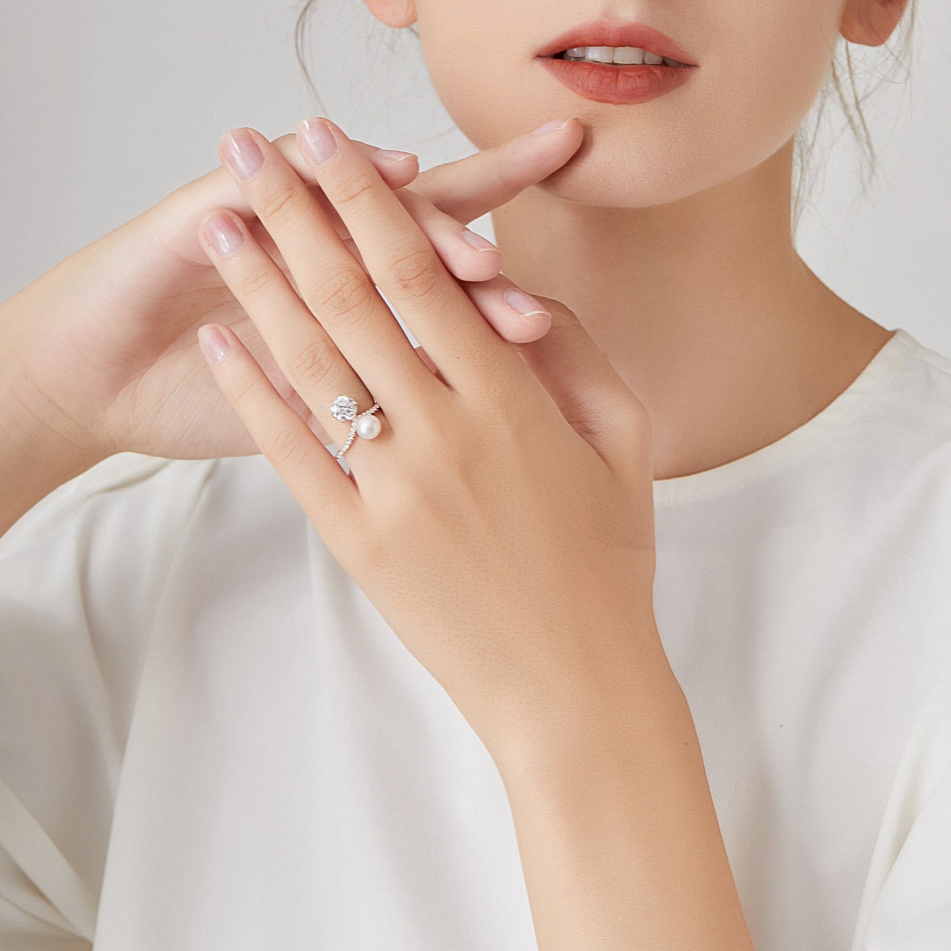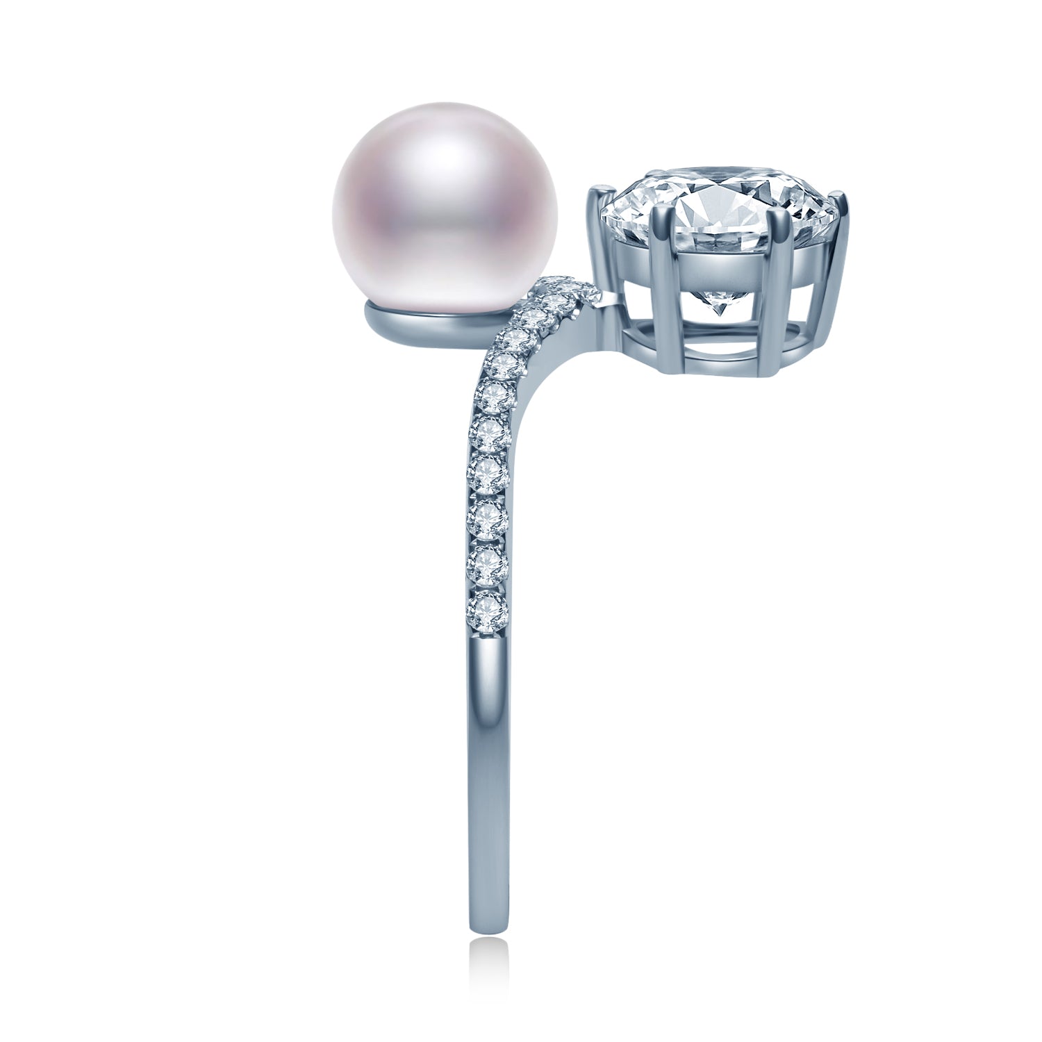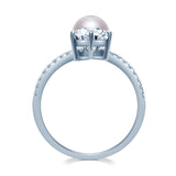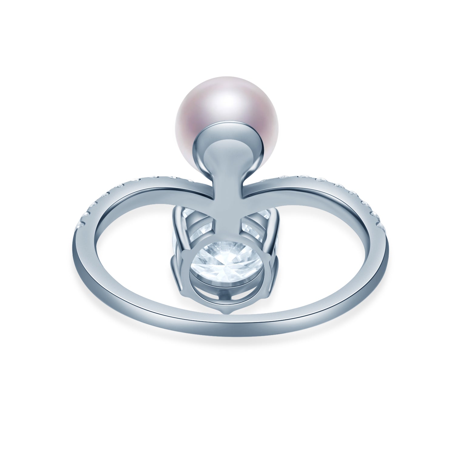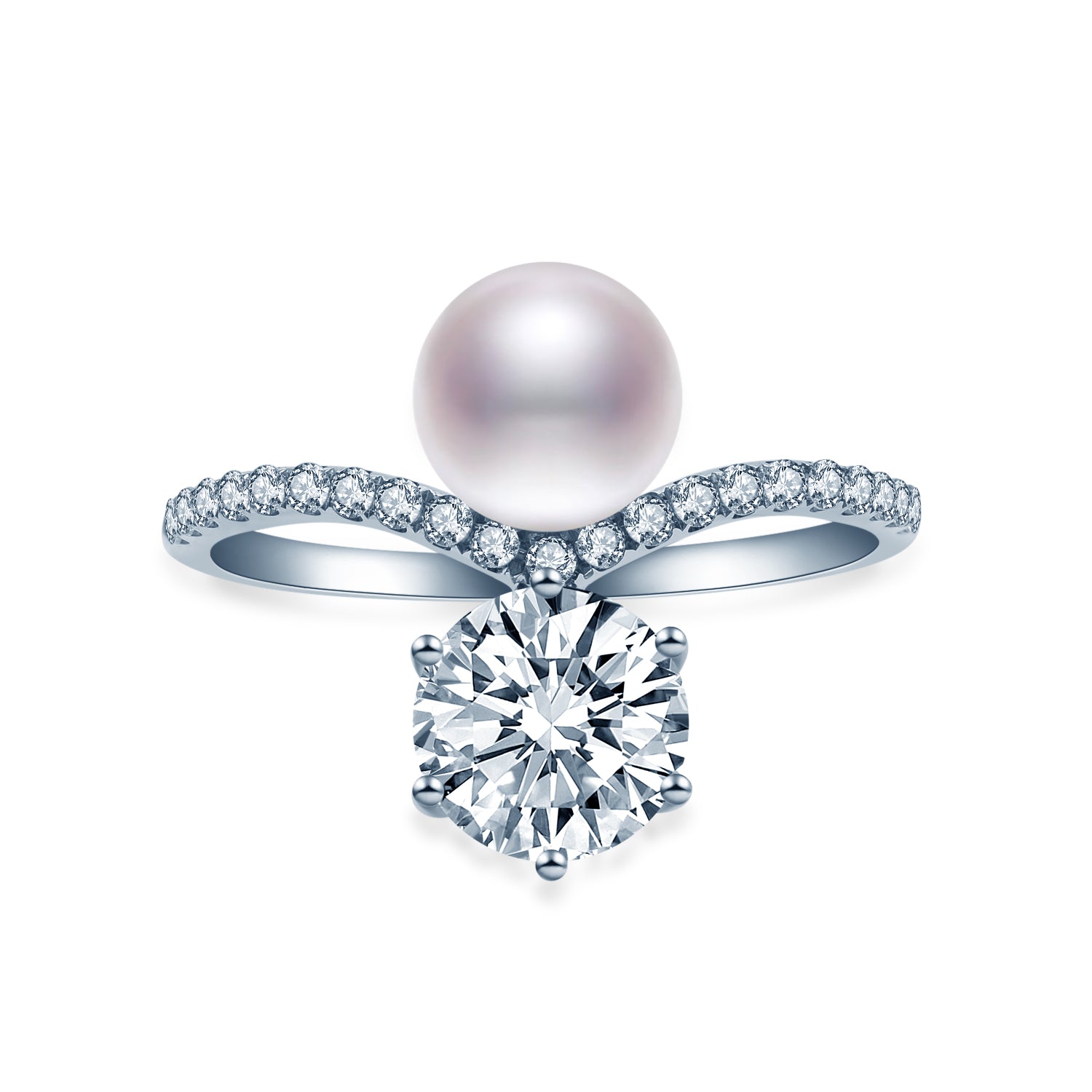 V字 パール ラウンド ハーフエタニティ リング RI385