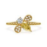 モアサナイト:ラウンドカット クリアモアサナイト、ペアシェイプイエローモアサナイト、合計0.65カラット