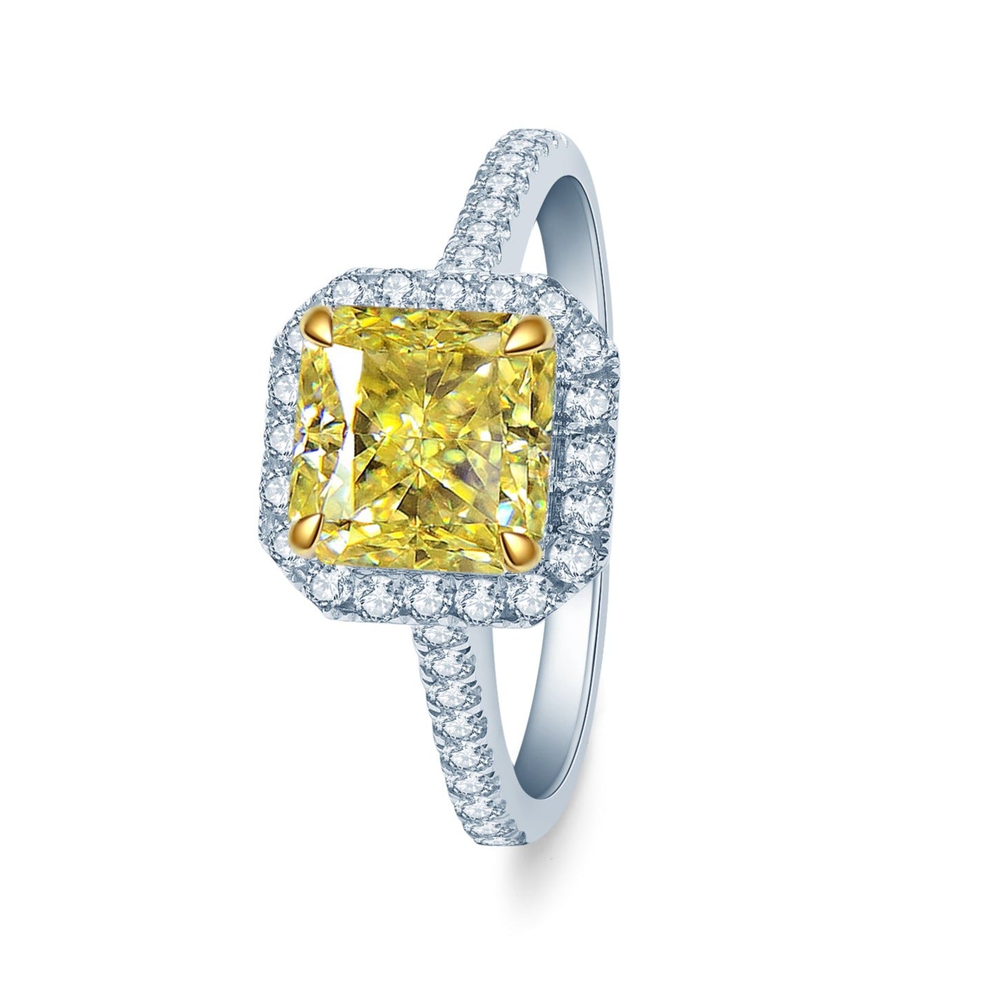 イエローモアサナイト ラディアントカット ヘイロー リング RI440