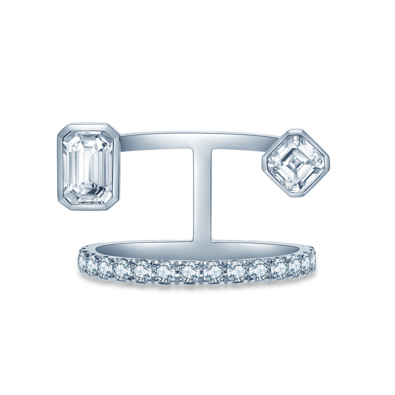 モアサナイト:エメラルドカット0.5カラット、アッシャーカット0.3カラット