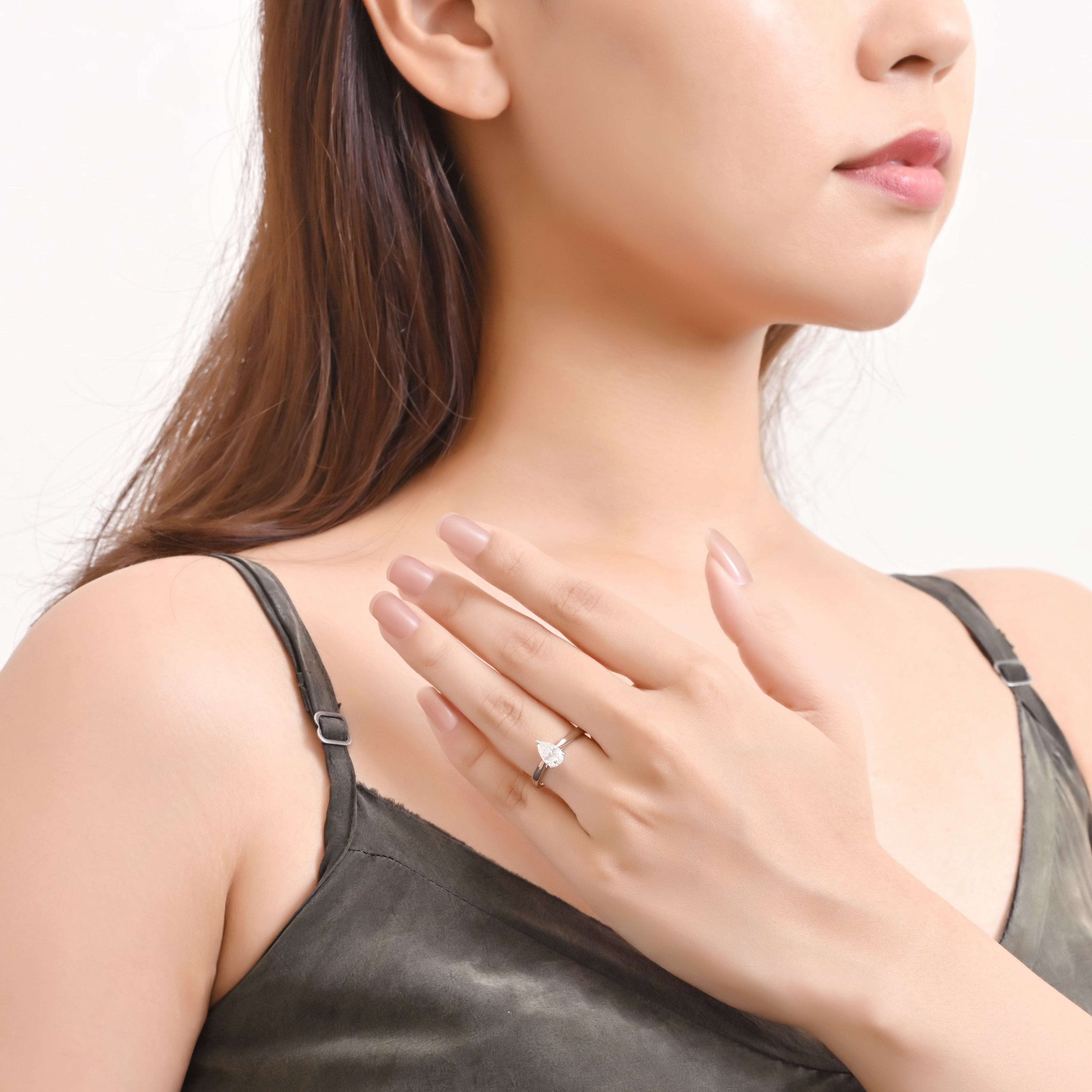センターストーン:ペアシェイプ、モアサナイト0.5〜3.0カラットよりお選びいただけます。
