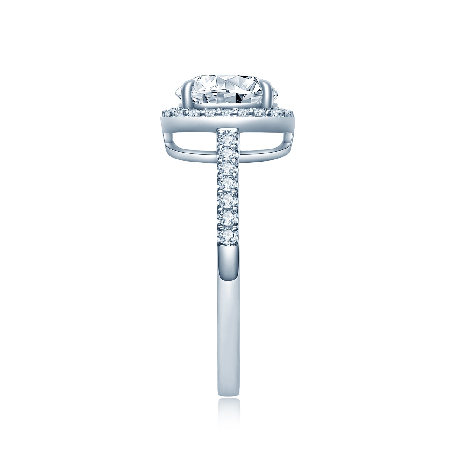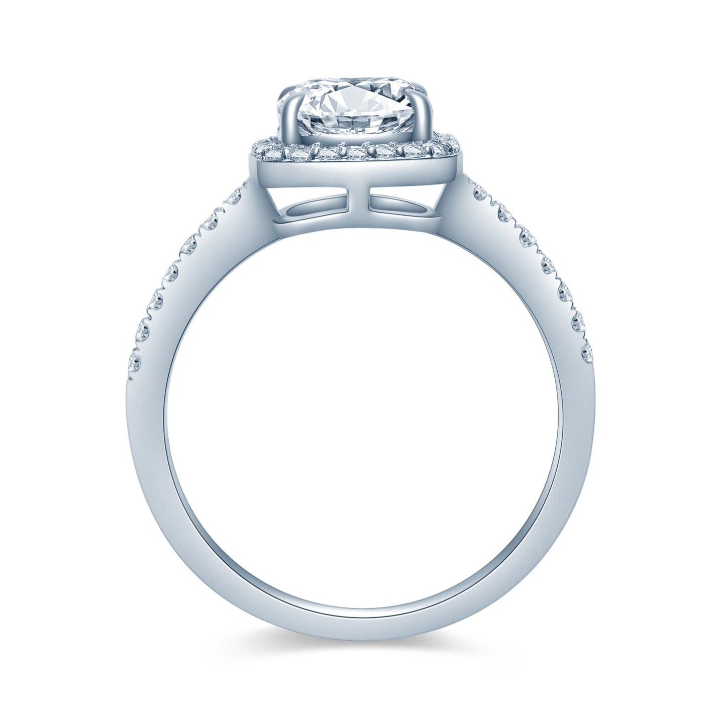 センターストーン:クッションカット、モアサナイト1.0カラット、2.0カラットよりお選びいただけます。