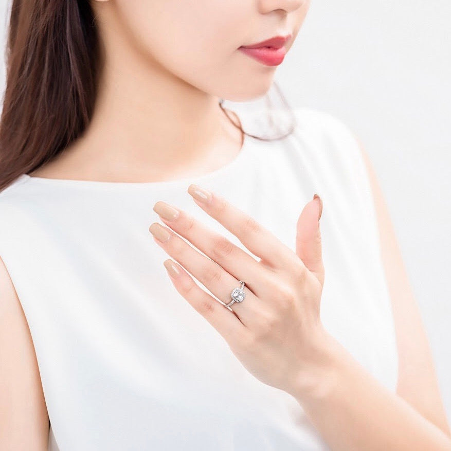 【即納】クッションカット ヘイロー ローセッティング リング RI099